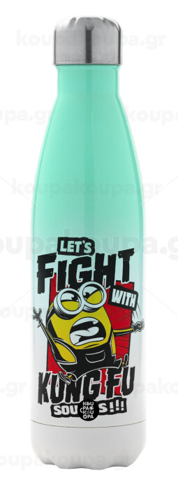 Minions Let's fight with kung fu sounds, Μεταλλικό παγούρι θερμός Πράσινο/Λευκό (Stainless steel), διπλού τοιχώματος, 500ml