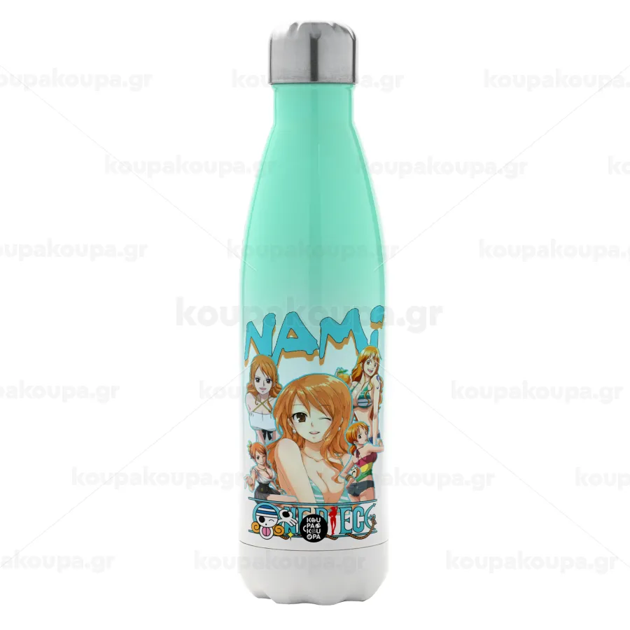 Nami One Piece, Μεταλλικό παγούρι θερμός Πράσινο/Λευκό (Stainless steel), διπλού τοιχώματος, 500ml