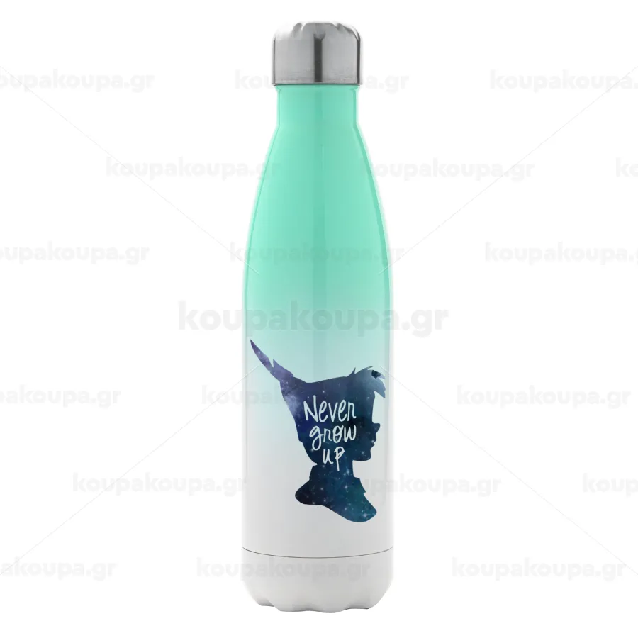 Never Grow UP, Μεταλλικό παγούρι θερμός Πράσινο/Λευκό (Stainless steel), διπλού τοιχώματος, 500ml