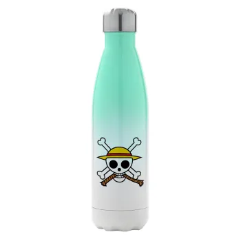 Onepiece skull, Μεταλλικό παγούρι θερμός Πράσινο/Λευκό (Stainless steel), διπλού τοιχώματος, 500ml