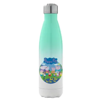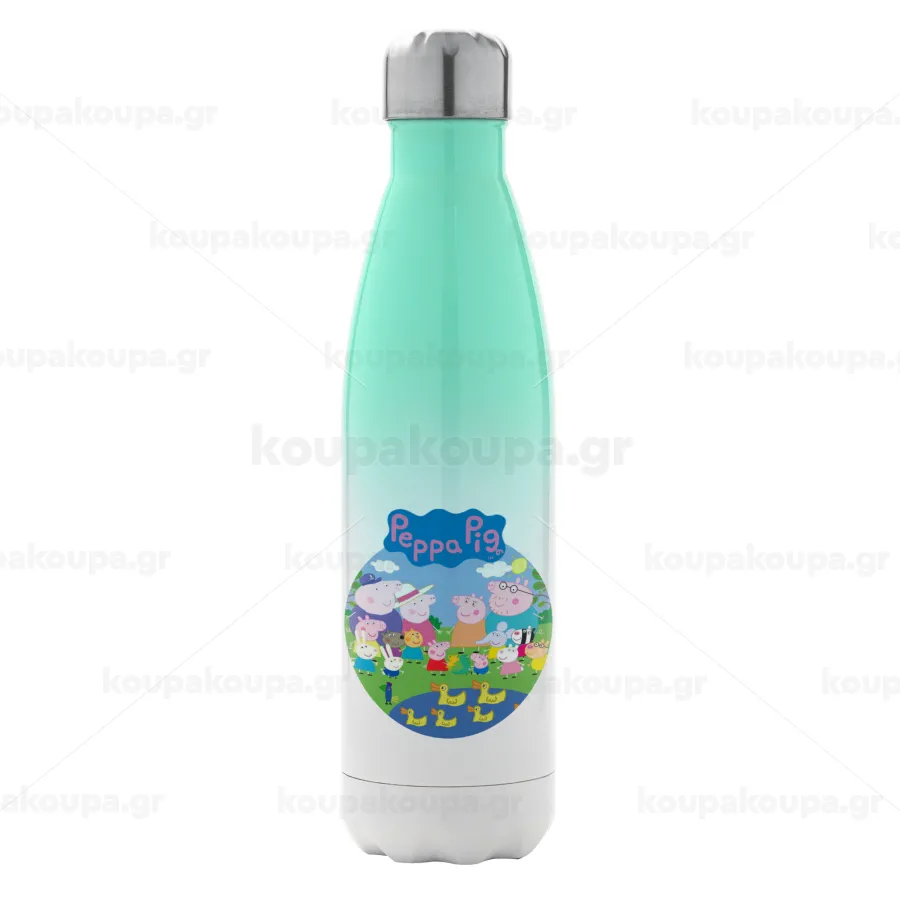 Peppa pig Family, Μεταλλικό παγούρι θερμός Πράσινο/Λευκό (Stainless steel), διπλού τοιχώματος, 500ml