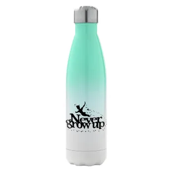 Peter pan, Never Grow UP, Μεταλλικό παγούρι θερμός Πράσινο/Λευκό (Stainless steel), διπλού τοιχώματος, 500ml