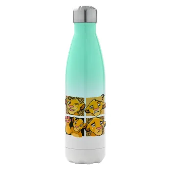 Simba, lion king, Μεταλλικό παγούρι θερμός Πράσινο/Λευκό (Stainless steel), διπλού τοιχώματος, 500ml