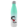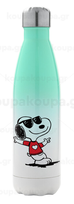 Snoopy καρδούλα, Μεταλλικό παγούρι θερμός Πράσινο/Λευκό (Stainless steel), διπλού τοιχώματος, 500ml