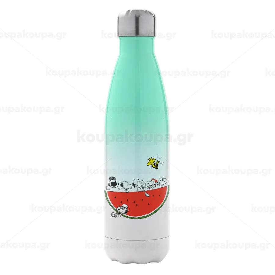 Snoopy summer, Μεταλλικό παγούρι θερμός Πράσινο/Λευκό (Stainless steel), διπλού τοιχώματος, 500ml