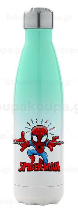 Spiderman flying, Μεταλλικό παγούρι θερμός Πράσινο/Λευκό (Stainless steel), διπλού τοιχώματος, 500ml