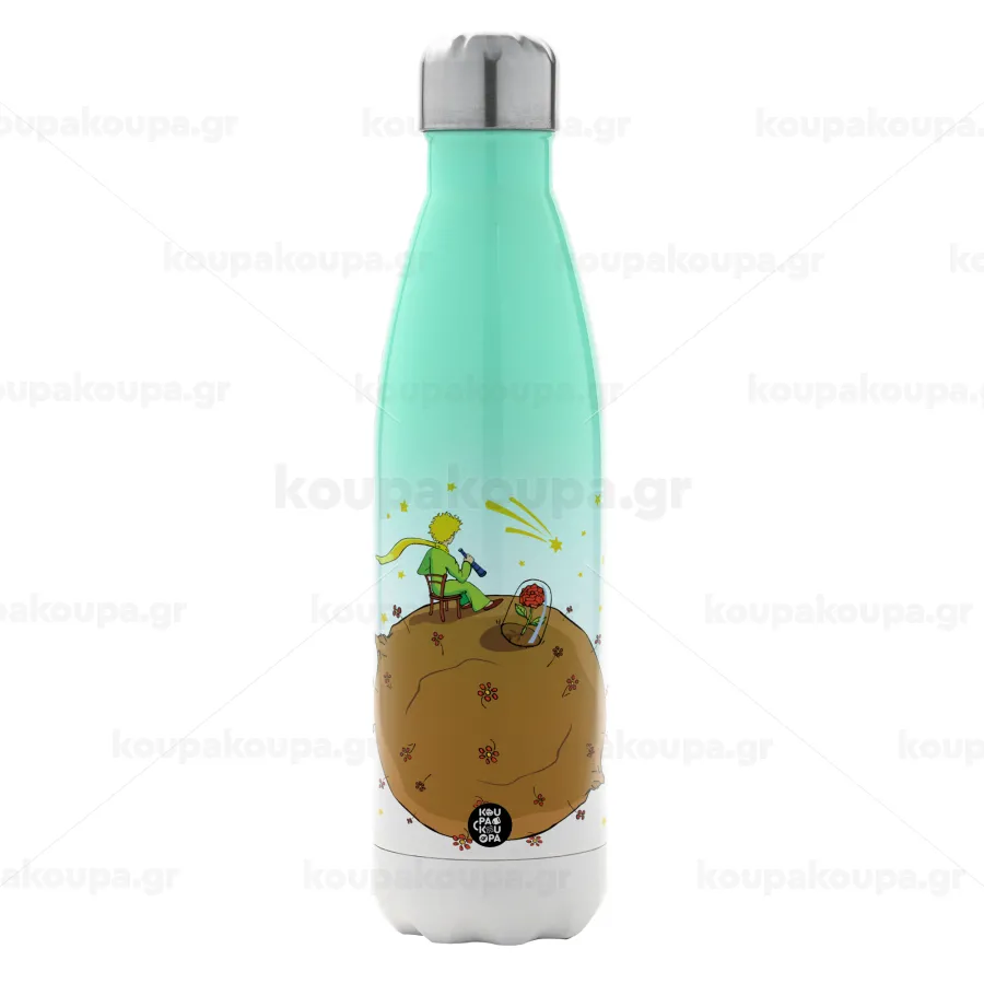 Ο μικρός πρίγκιπας planet, Μεταλλικό παγούρι θερμός Πράσινο/Λευκό (Stainless steel), διπλού τοιχώματος, 500ml