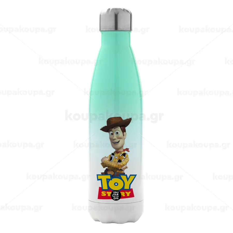 Woody cowboy, Μεταλλικό παγούρι θερμός Πράσινο/Λευκό (Stainless steel), διπλού τοιχώματος, 500ml