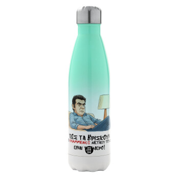 ΠΩΣ ΤΑ ΒΡΙΣΚΟΥΝ ΟΙ ΒΛΑ....ΝΟΙ ΜΕΤΑΞΥ ΤΟΥΣ, ΕΙΝΑΙ ΤΡΟΜΕΡΟ!!!, Μεταλλικό παγούρι θερμός Πράσινο/Λευκό (Stainless steel), διπλού τοιχώματος, 500ml