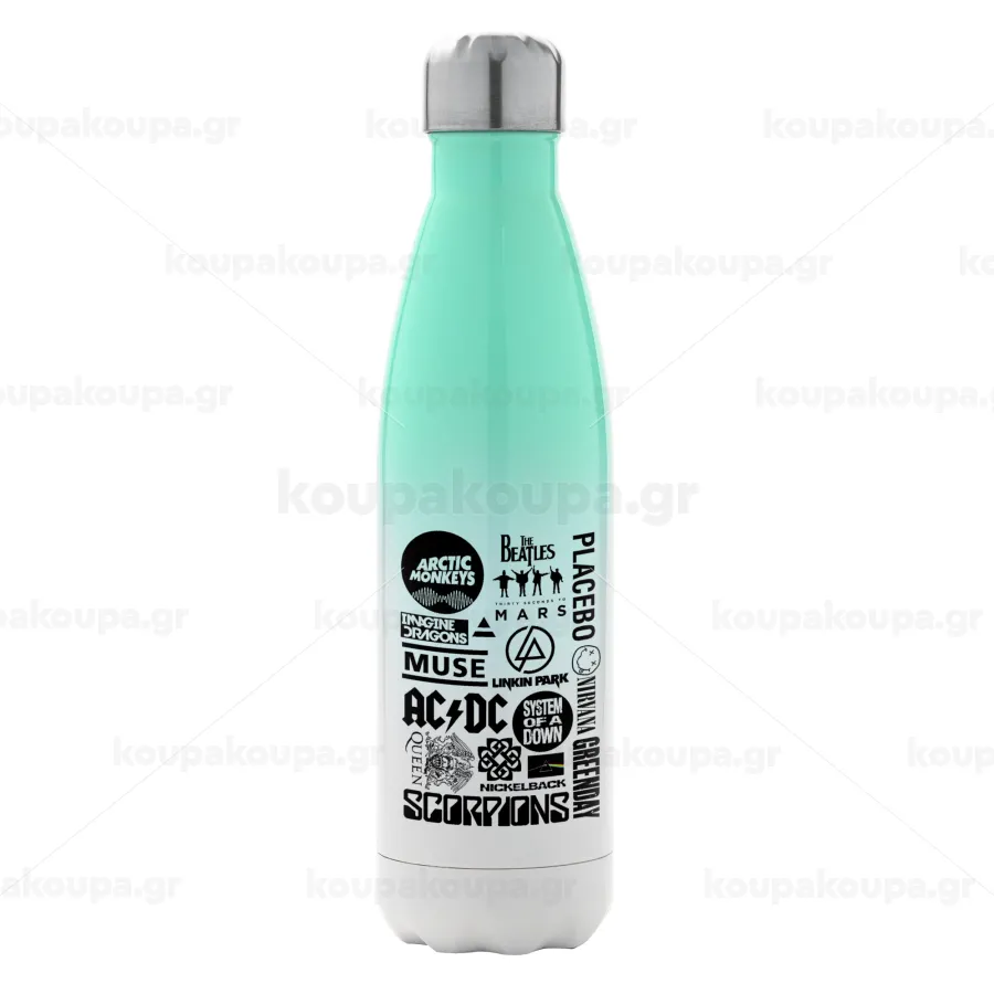 Best Rock Bands Collection, Μεταλλικό παγούρι θερμός Πράσινο/Λευκό (Stainless steel), διπλού τοιχώματος, 500ml