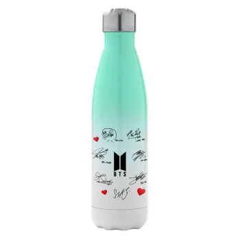 BTS signatures, Μεταλλικό παγούρι θερμός Πράσινο/Λευκό (Stainless steel), διπλού τοιχώματος, 500ml