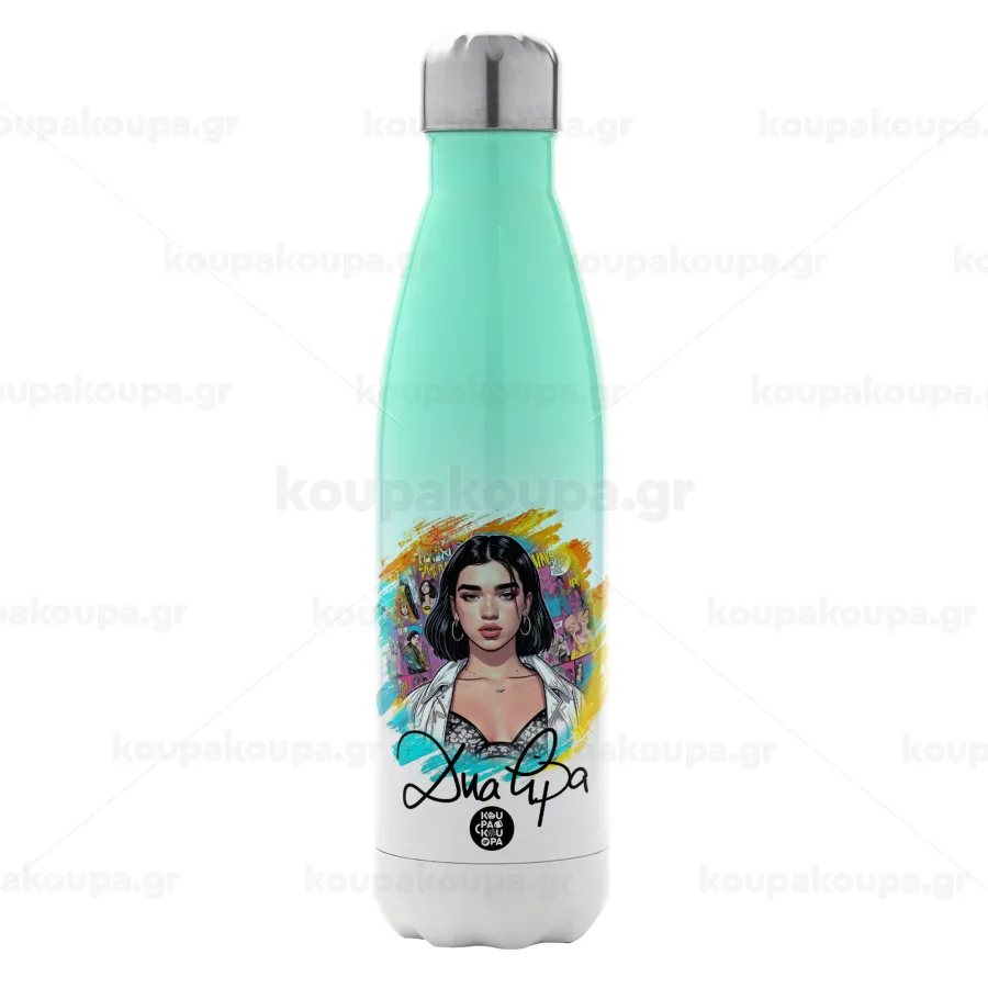 Dua lipa, Μεταλλικό παγούρι θερμός Πράσινο/Λευκό (Stainless steel), διπλού τοιχώματος, 500ml