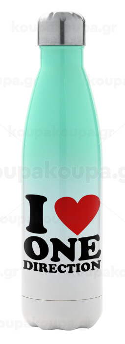 I Love, One Direction, Μεταλλικό παγούρι θερμός Πράσινο/Λευκό (Stainless steel), διπλού τοιχώματος, 500ml