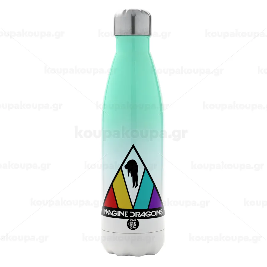 Imagine Dragons, Μεταλλικό παγούρι θερμός Πράσινο/Λευκό (Stainless steel), διπλού τοιχώματος, 500ml