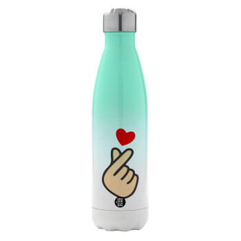 Korean Finger Heart, Μεταλλικό παγούρι θερμός Πράσινο/Λευκό (Stainless steel), διπλού τοιχώματος, 500ml