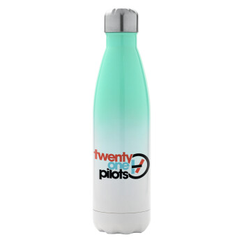 Twenty one pilots, Μεταλλικό παγούρι θερμός Πράσινο/Λευκό (Stainless steel), διπλού τοιχώματος, 500ml