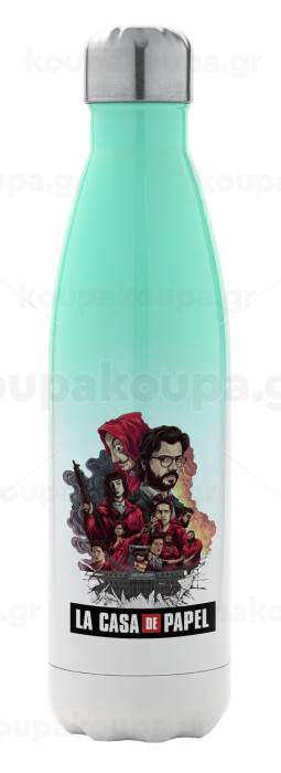 La casa de papel drawing cover, Μεταλλικό παγούρι θερμός Πράσινο/Λευκό (Stainless steel), διπλού τοιχώματος, 500ml