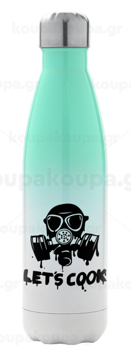 Let's cook mask, Μεταλλικό παγούρι θερμός Πράσινο/Λευκό (Stainless steel), διπλού τοιχώματος, 500ml