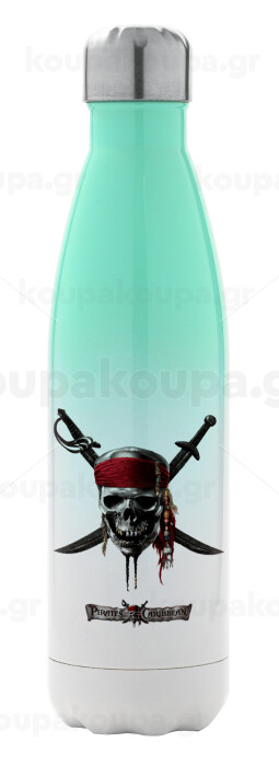 Pirates of the Caribbean, Μεταλλικό παγούρι θερμός Πράσινο/Λευκό (Stainless steel), διπλού τοιχώματος, 500ml