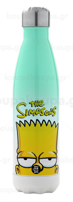 The Simpsons Bart, Μεταλλικό παγούρι θερμός Πράσινο/Λευκό (Stainless steel), διπλού τοιχώματος, 500ml