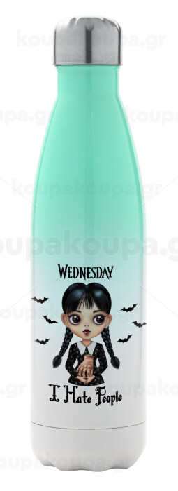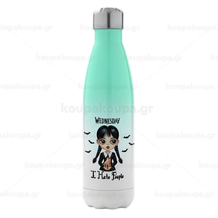 Wednesday Adams, i hate people, Μεταλλικό παγούρι θερμός Πράσινο/Λευκό (Stainless steel), διπλού τοιχώματος, 500ml