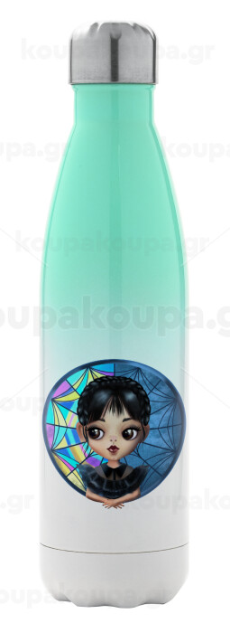 Wednesday big eyes, Μεταλλικό παγούρι θερμός Πράσινο/Λευκό (Stainless steel), διπλού τοιχώματος, 500ml