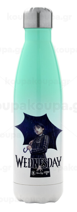 Wednesday rain, Μεταλλικό παγούρι θερμός Πράσινο/Λευκό (Stainless steel), διπλού τοιχώματος, 500ml