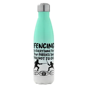 Fencing, do everything that your parents told you not to do., Μεταλλικό παγούρι θερμός Πράσινο/Λευκό (Stainless steel), διπλού τοιχώματος, 500ml