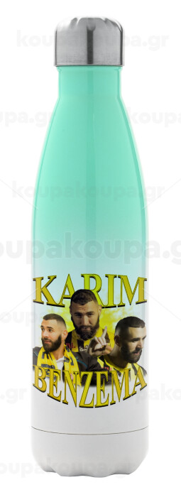 Karim Benzema, Μεταλλικό παγούρι θερμός Πράσινο/Λευκό (Stainless steel), διπλού τοιχώματος, 500ml