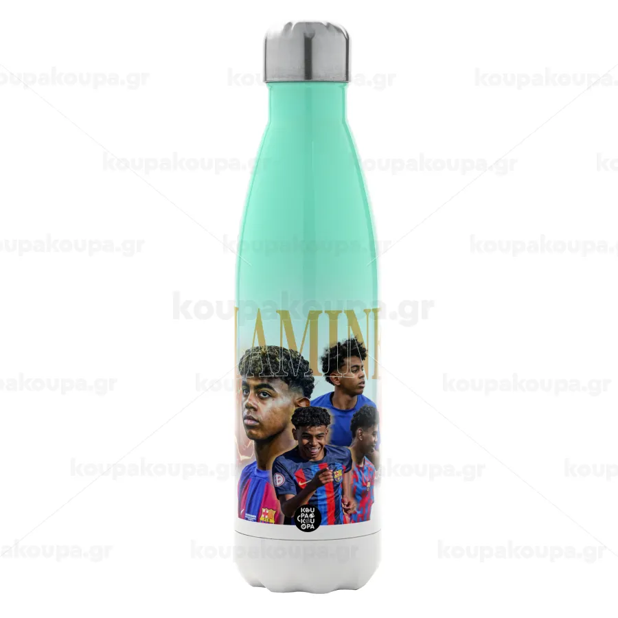 lamine yamal FCB, Μεταλλικό παγούρι θερμός Πράσινο/Λευκό (Stainless steel), διπλού τοιχώματος, 500ml