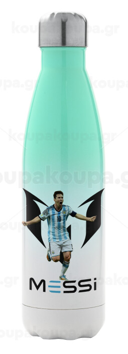 Λιονέλ Μέσι, Leo Messi, Μεταλλικό παγούρι θερμός Πράσινο/Λευκό (Stainless steel), διπλού τοιχώματος, 500ml
