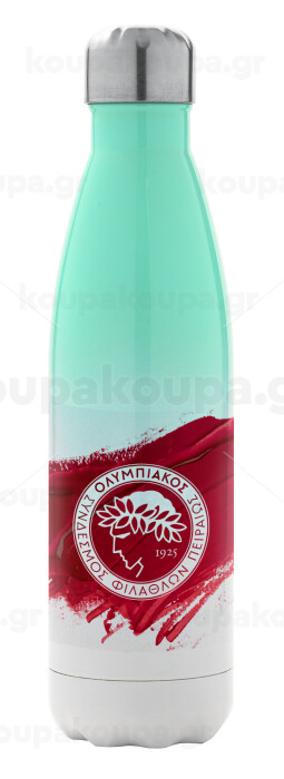 Olympiacos F.C., Μεταλλικό παγούρι θερμός Πράσινο/Λευκό (Stainless steel), διπλού τοιχώματος, 500ml