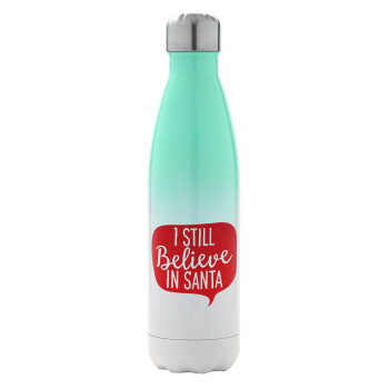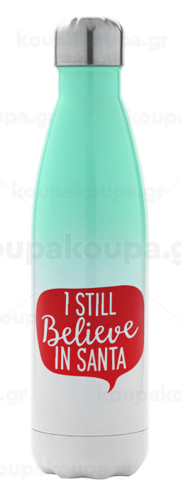 Ι still believe in santa, Μεταλλικό παγούρι θερμός Πράσινο/Λευκό (Stainless steel), διπλού τοιχώματος, 500ml