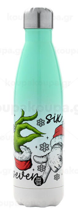 Christmas Meme SIX SEVEN (67), Μεταλλικό παγούρι θερμός Πράσινο/Λευκό (Stainless steel), διπλού τοιχώματος, 500ml