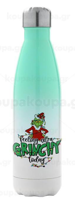 Grinch Feeling Extra Grinchy Today, Μεταλλικό παγούρι θερμός Πράσινο/Λευκό (Stainless steel), διπλού τοιχώματος, 500ml