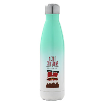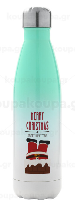 Merry christmas chimney, Μεταλλικό παγούρι θερμός Πράσινο/Λευκό (Stainless steel), διπλού τοιχώματος, 500ml