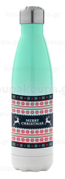 Merry Christmas Vintage, Μεταλλικό παγούρι θερμός Πράσινο/Λευκό (Stainless steel), διπλού τοιχώματος, 500ml