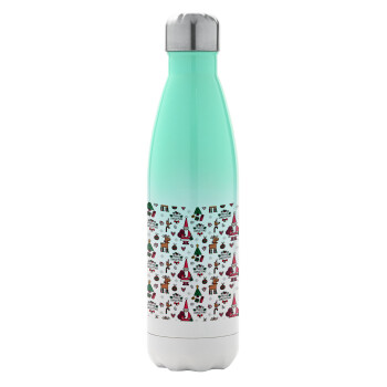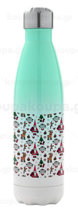 Santas, Deers & Trees, Μεταλλικό παγούρι θερμός Πράσινο/Λευκό (Stainless steel), διπλού τοιχώματος, 500ml