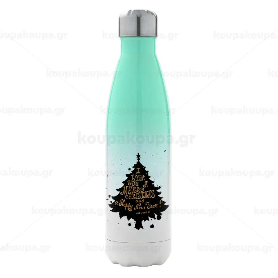 Tree, i wish you a merry christmas and a Happy New Year!!! xoxoxo, Μεταλλικό παγούρι θερμός Πράσινο/Λευκό (Stainless steel), διπλού τοιχώματος, 500ml