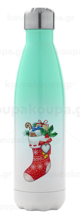 Xmas boot, Μεταλλικό παγούρι θερμός Πράσινο/Λευκό (Stainless steel), διπλού τοιχώματος, 500ml