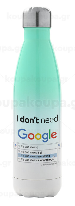 I don't need Google my dad..., Μεταλλικό παγούρι θερμός Πράσινο/Λευκό (Stainless steel), διπλού τοιχώματος, 500ml