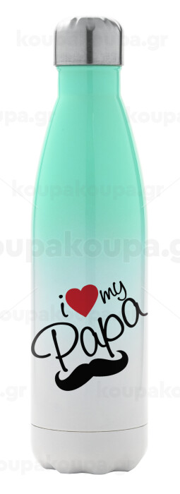 I Love my papa, Μεταλλικό παγούρι θερμός Πράσινο/Λευκό (Stainless steel), διπλού τοιχώματος, 500ml