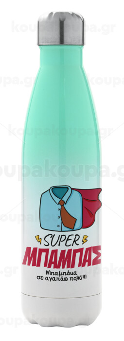 SUPER ΜΠΑΜΠΑΣ, Μεταλλικό παγούρι θερμός Πράσινο/Λευκό (Stainless steel), διπλού τοιχώματος, 500ml