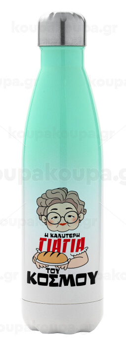 Η καλύτερη γιαγιά του κόσμου!, Μεταλλικό παγούρι θερμός Πράσινο/Λευκό (Stainless steel), διπλού τοιχώματος, 500ml