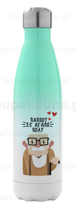 Παππού σε αγαπώ πολύ!, Μεταλλικό παγούρι θερμός Πράσινο/Λευκό (Stainless steel), διπλού τοιχώματος, 500ml