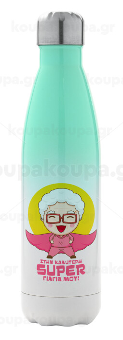 Στην καλύτερη Super γιαγιά μου!, Μεταλλικό παγούρι θερμός Πράσινο/Λευκό (Stainless steel), διπλού τοιχώματος, 500ml