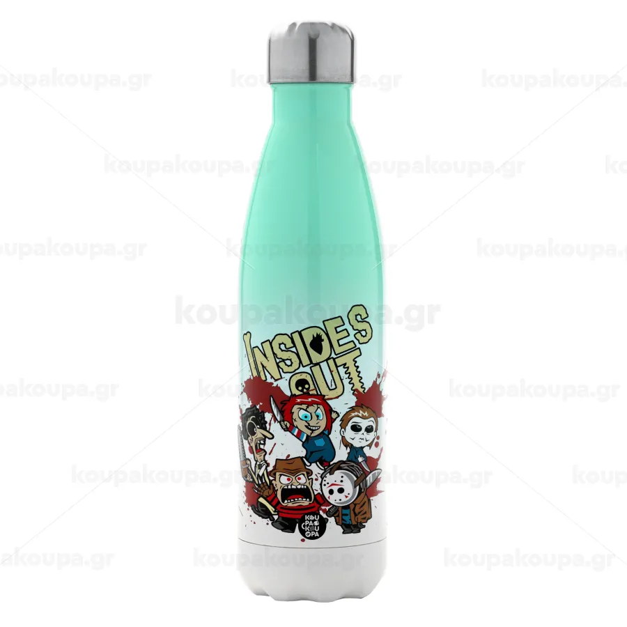 Halloween Inside out, Μεταλλικό παγούρι θερμός Πράσινο/Λευκό (Stainless steel), διπλού τοιχώματος, 500ml