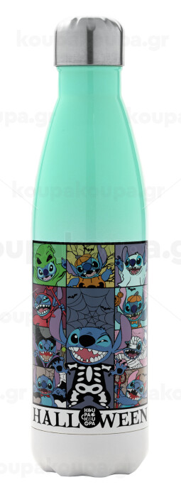 Stitch Halloween, Μεταλλικό παγούρι θερμός Πράσινο/Λευκό (Stainless steel), διπλού τοιχώματος, 500ml