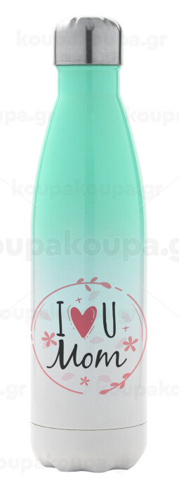 I Love you Mom pink, Μεταλλικό παγούρι θερμός Πράσινο/Λευκό (Stainless steel), διπλού τοιχώματος, 500ml