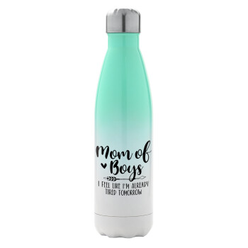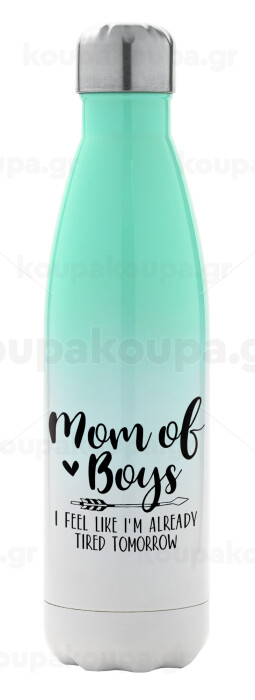 Mom of boys i feel like im already tired tomorrow, Μεταλλικό παγούρι θερμός Πράσινο/Λευκό (Stainless steel), διπλού τοιχώματος, 500ml